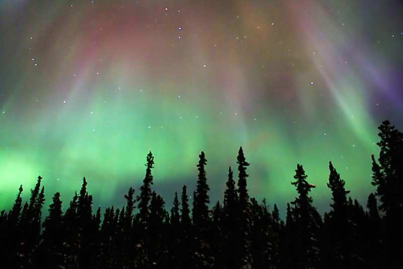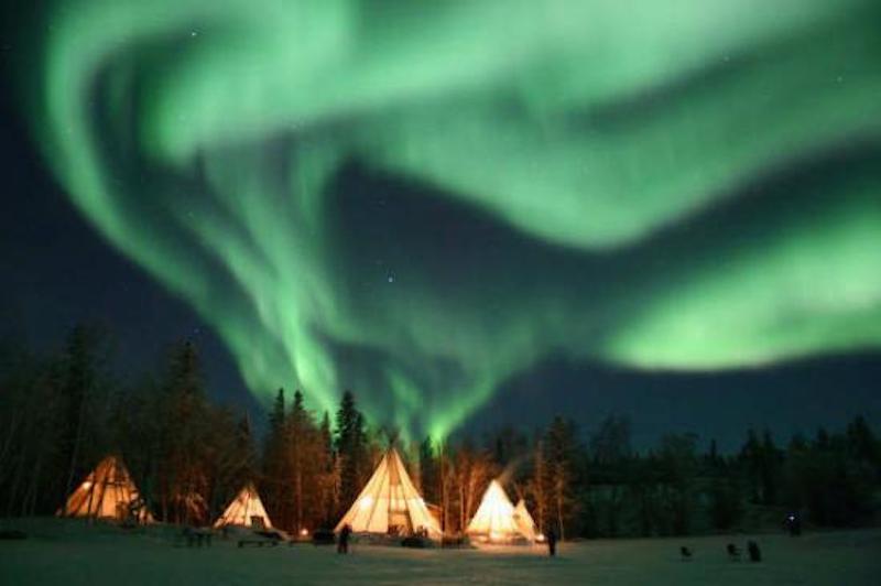 Yellowknife是看北极光的圣地,是许多北极光爱好者的首选。Northwest Territories省内大部分土地已经进入极光圈内。Yellowknife降水极少,因此几乎每天晚上都是晴朗的夜晚,再加上城市的纬度,极光出现的时候往往直接出现在头顶,而不是仅仅沿着地平线。